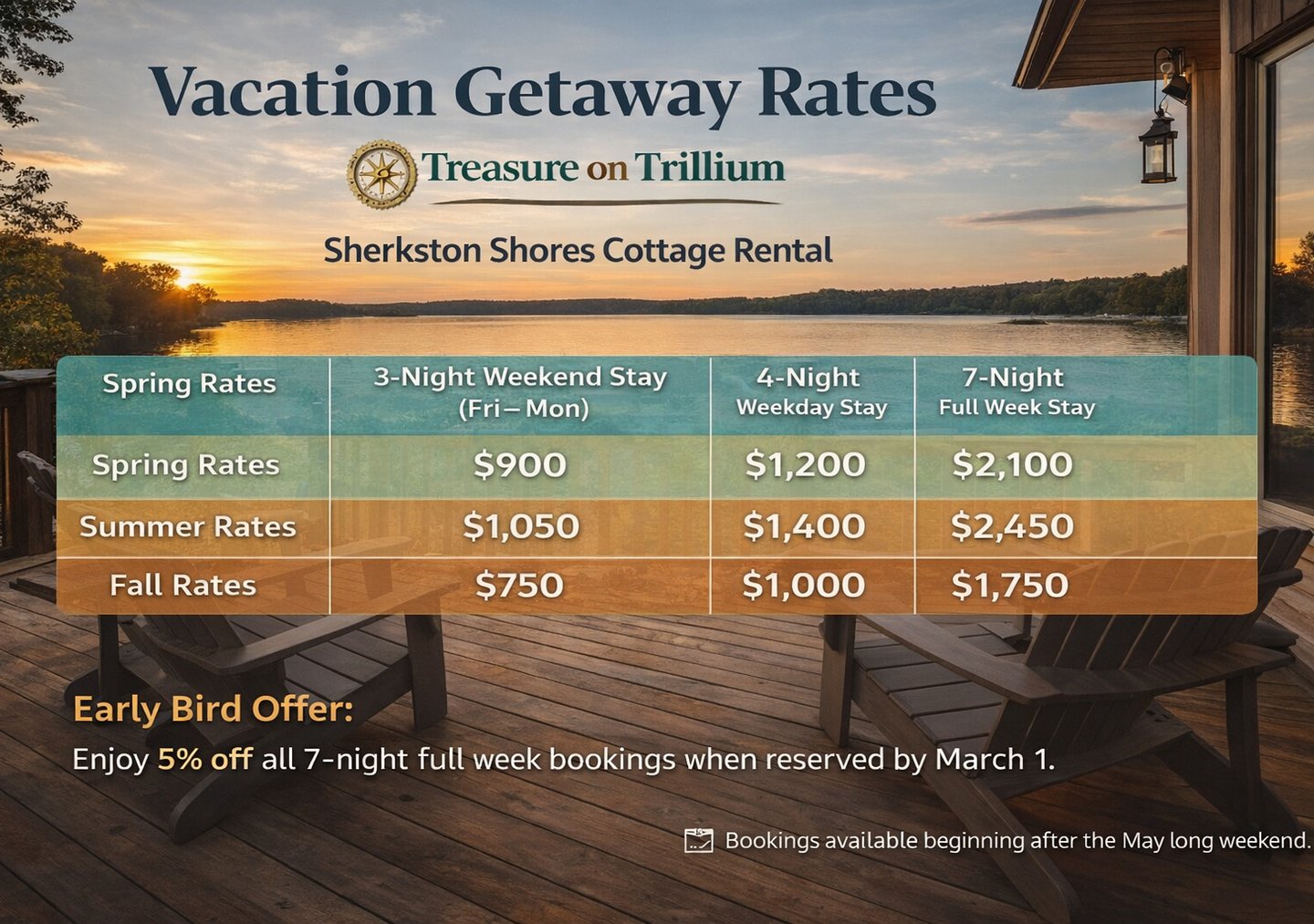 Treasure on Trillium - Rental Price Sheet