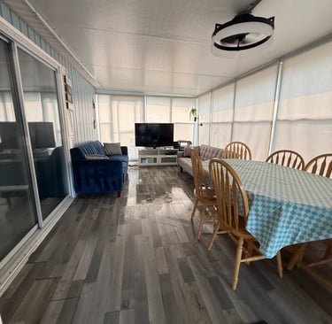 Enjoy a fully equipped kitchen in this spacious 2-bedroom, 2-bath unit, featuring two pull-out couches, a sun porch, and a large deck—comfortably accommodating up to 8 guests.